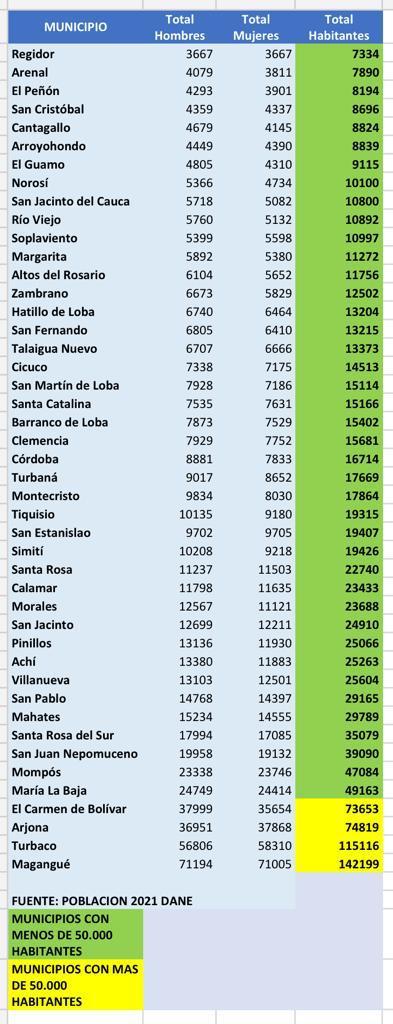 En estas poblaciones se seguirán aplicando las vacunas de acuerdo a las etapas determinadas por el Gobierno Nacional pero es una gran noticia para Bolívar que casi la totalidad de su territorio (41 municipios) quedan habilitados a partir de este momento para vacunar a todas las personas mayores de 18 años.