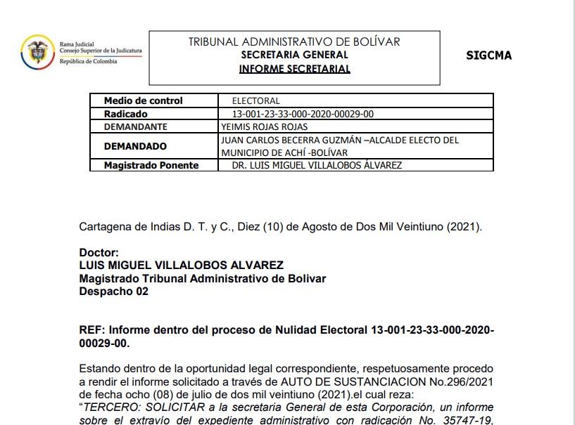 «Corrió el rumor de que se había extraviado el expediente de la nulidad de Achi en las oficinas del Tribunal. Esto fue desmentido por la doctora Ingrid Soto, oficial mayor del Tribunal quien nos manifestó que es imposible que desaparezca toda vez que todo queda marcado en los correos y electrónicos. No queremos que al pueblo achiano lo sigan alimentando con estas mentiras. Ya estamos cansados», expresó López Serpa.