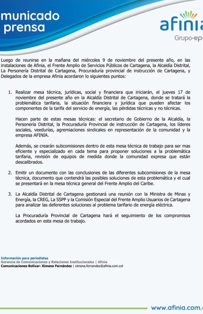 La compañía ha ratificado que está firmemente comprometida por encontrar mecanismos que permitan alcanzar una solución estructural y significativa para disminuir la tarifa de energía, que beneficie a la comunidad y garantice la sostenibilidad de la compañía.