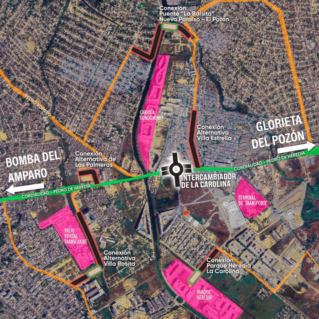 El proyecto no se limita solo al Intercambiador, pues contempla 2,5 kilómetros de vías adicionales que quedarán como legado para la ciudad y que deben estar listas antes de iniciarse la obra macro, para descongestionar el tráfico mientras se interviene por varios meses el céntrico punto en La Cordialidad. Estas son: