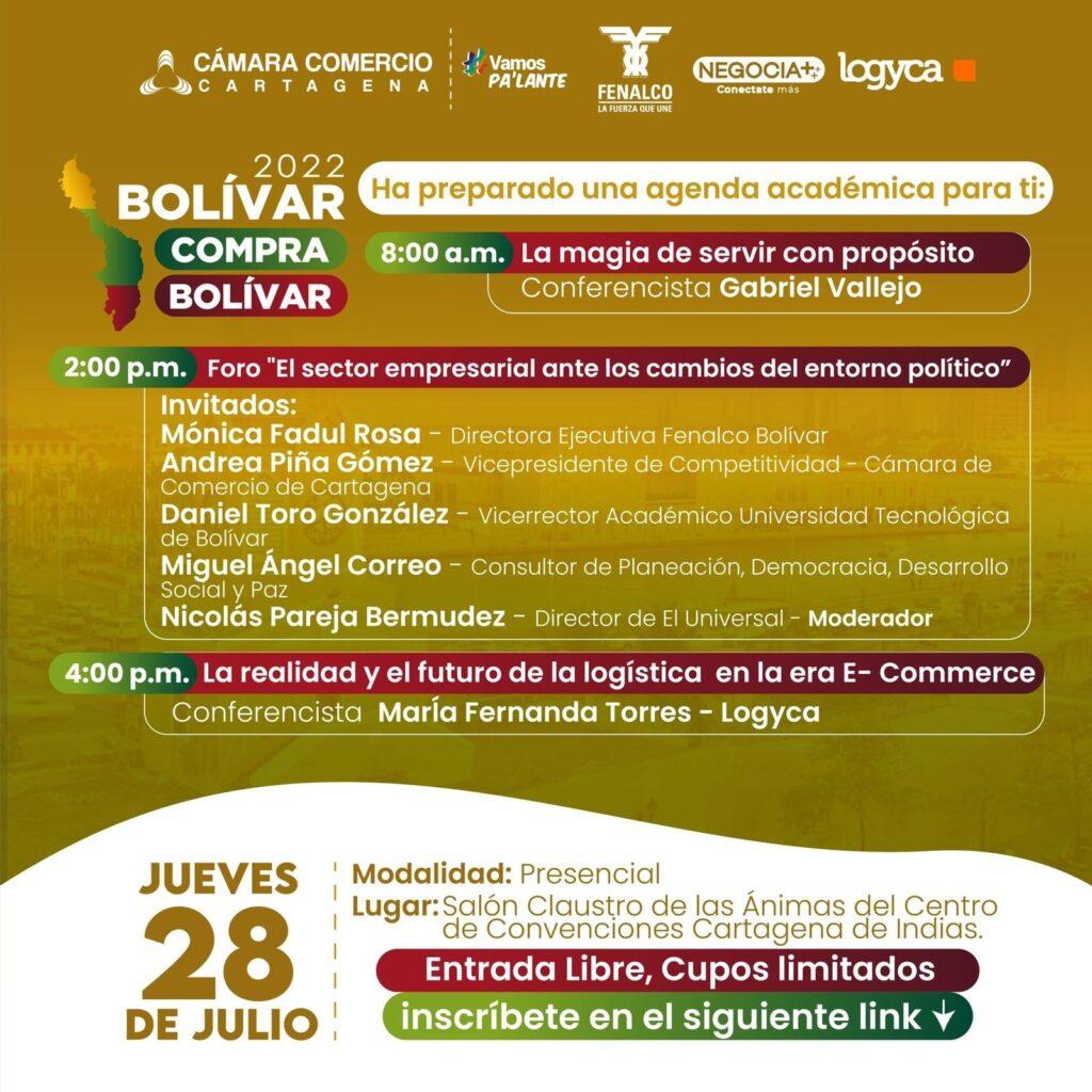 La Cámara de Comercio de Cartagena (CCC) y Fenalco Bolívar realizarán este jueves, 28 de julio, en el Centro de Convenciones de Cartagena, una rueda de negocios, la cual les permitirá a proveedores de Bolívar establecer alianzas comerciales a través de la actividad de relacionamiento “Bolívar Compra Bolívar”.