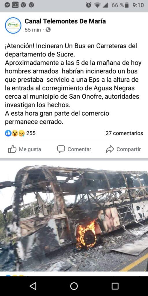 La tensión es total. Juan Carlos Herazo, secretario del Interior de San Onofre, confirmó la situación que se vive en la zona pero hizo un llamado a la calma y aseguró que las autoridades policivas y militares patrullarán las calles para garantizar seguridad. Las amenazas se difundieron a través de las redes sociales en las que advertían a la comunidad y la amenazaban.