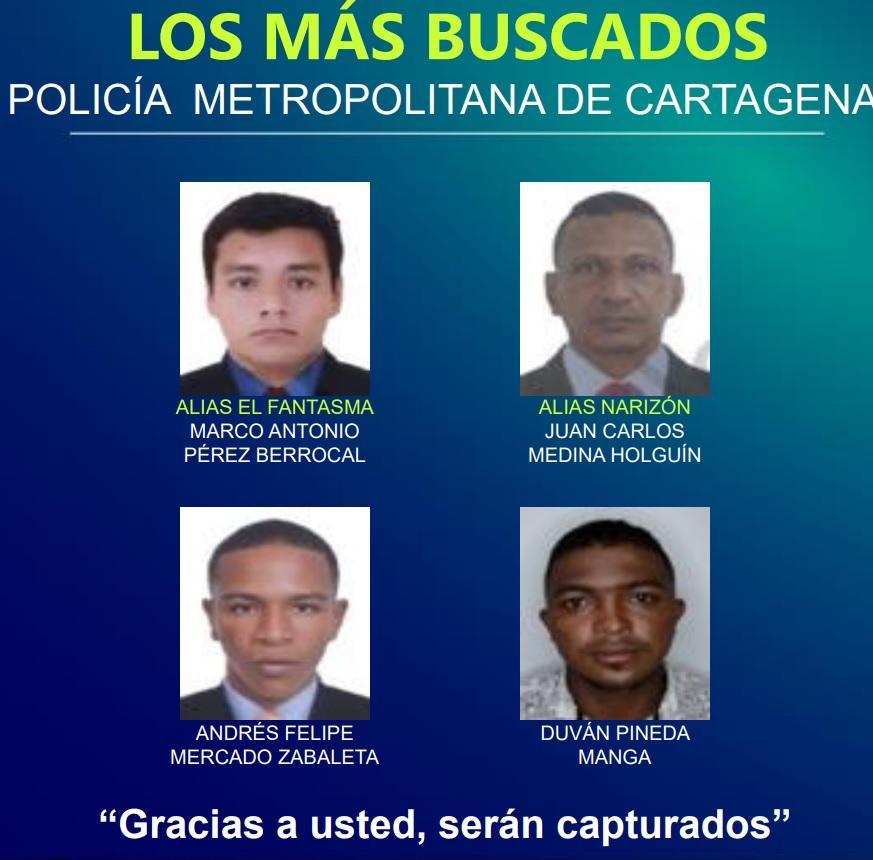 ´Queremos decirle a la opinión pública que ofrecemos confidencialidad y absoluta reserva, a las personas que entreguen información de las personas ubicadas en este cartel de los más buscados por hurto´, puntualizó el comandante de la Policía Metropolitana de Cartagena de Indias, brigadier general Nicolás Alejandro Zapata Restrepo.
