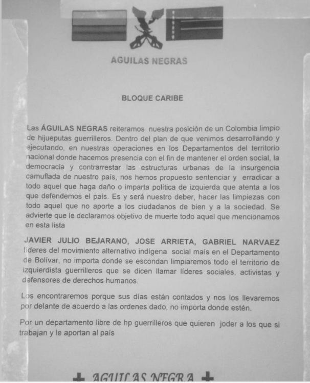 No es la primera vez que este grupo paramilitar hace públicas amenazas de este tipo sin que las autoridades descubran a los autores. De hecho, la Policía niega la existencia de Águilas Negras a pesar de su creciente proyección mediática producto de documentos como el que recibió el concejal Bejarano.