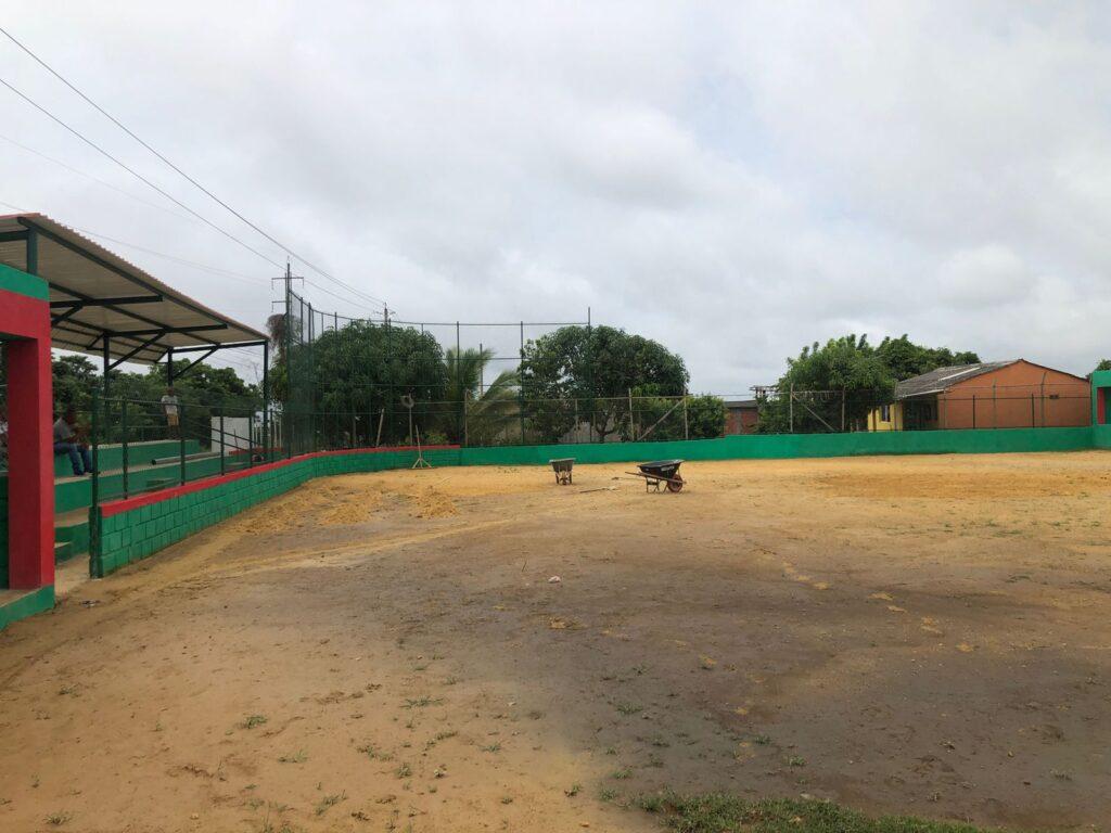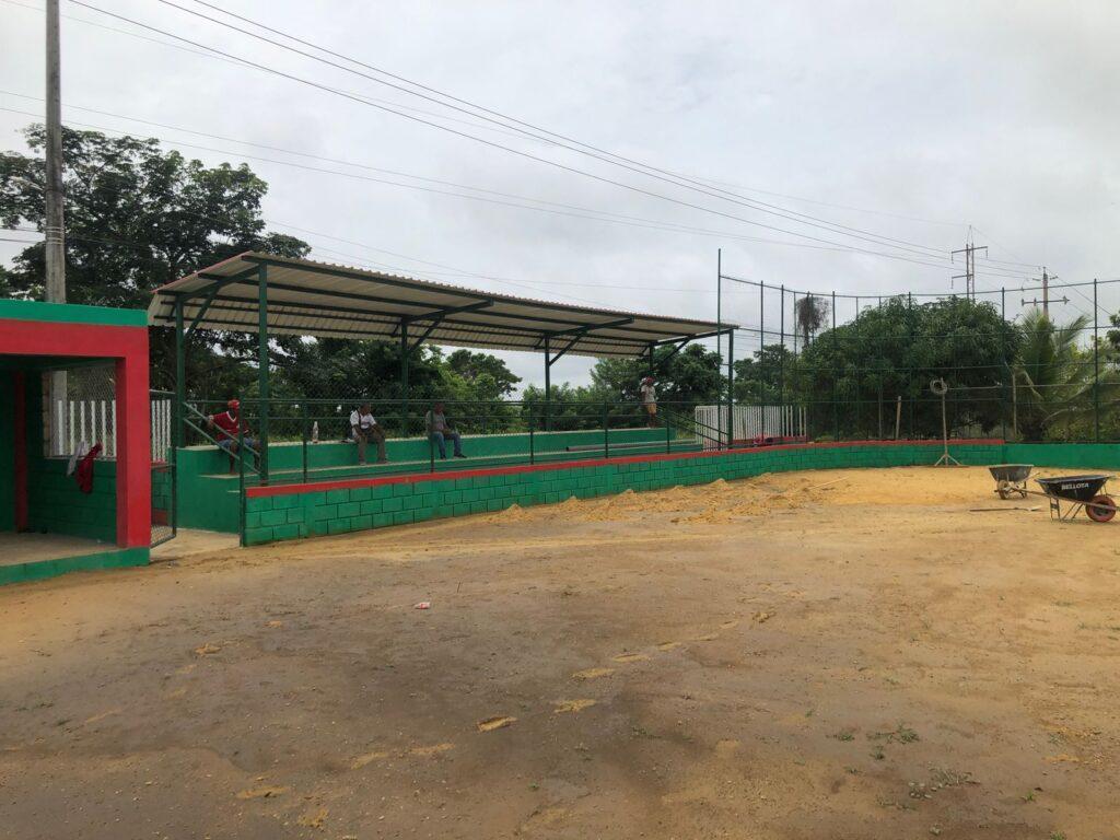 El estadio de béisbol menor estará terminado en los próximos días, en estos momentos se está sembrando la grama y realizando los últimos detalles para que esté completamente listo para que los niños y jóvenes puedan practicar el rey de los deportes.