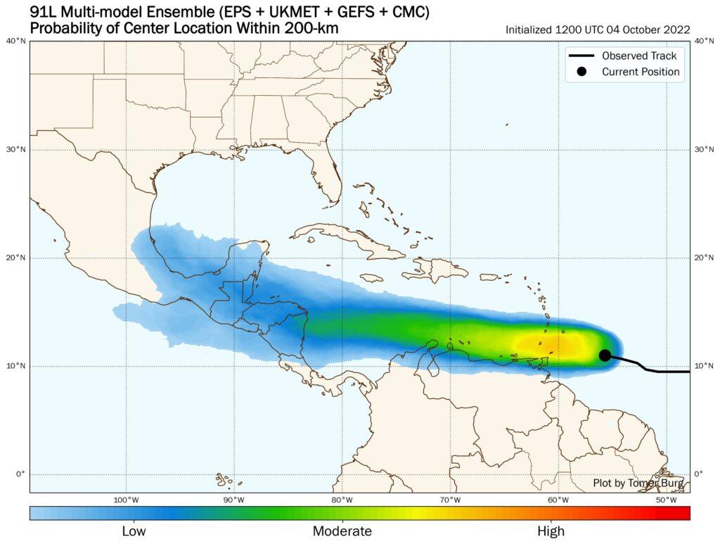 El Centro Nacional de Huracanes de la Oficina Nacional de Administración Oceánica y Atmosférica (NHC-NOAA) estima una probabilidad de que esta onda se convierta en una depresión tropical en 70 % en el transcurso de los próximos dos días y del 90 % en los próximos cinco días.