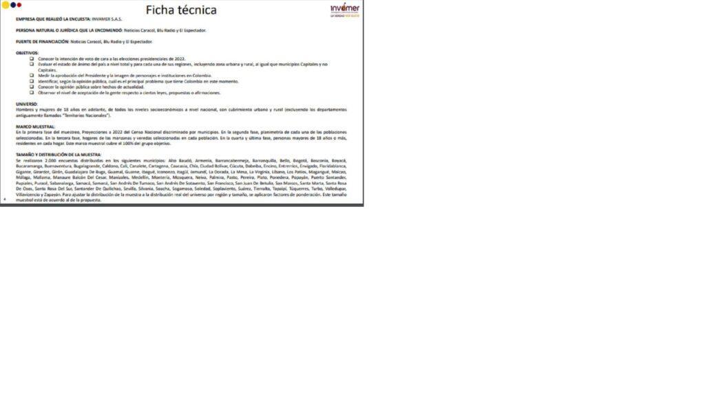 La firma Invamer detalló que los recientes escándalos de Petro junto a Roy Barreras no se reflejaron, ya que el sondeo se hizo entre el 3 y el 7 de junio a 2.000 personas en todo el país.