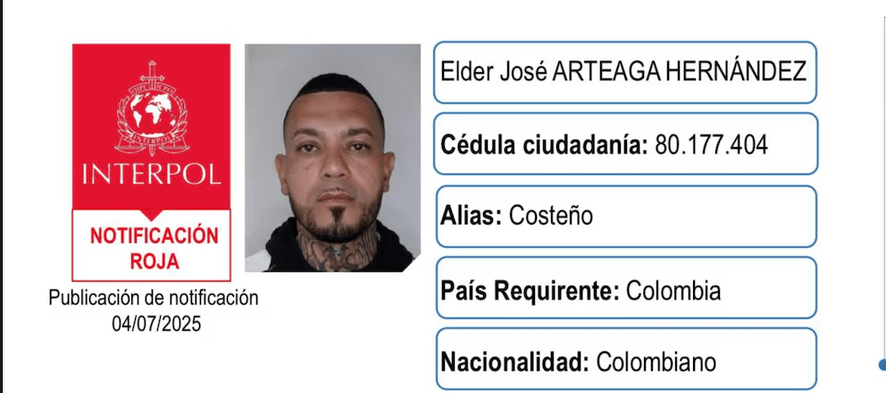 Aunque inicialmente se reportó que alias el Costeño había salido del país, lo que llevó a Interpol a emitir una notificación roja en su contra, su captura dio en la localidad de Engativá, en Bogotá.