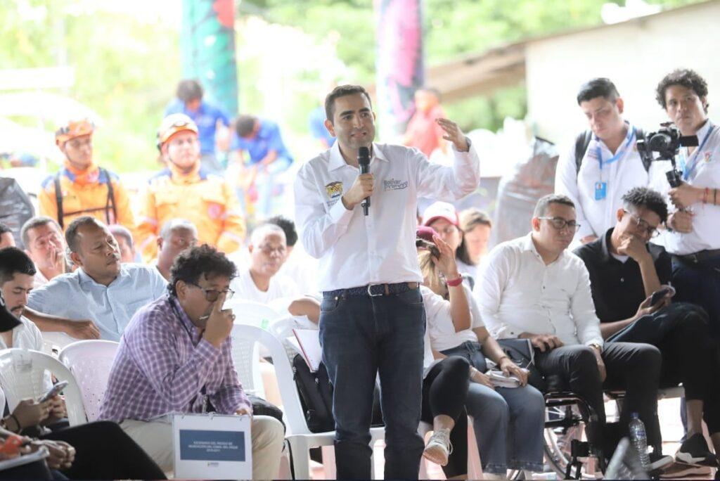 «Señor presidente en Bolívar estamos a 20 centímetros para que esto se convierta en una emergencia de grandes magnitudes. En el departamento exiten 1.682 kilómetros de orillas, eso es una ventaja, pero que también se convierte en una amenaza en tiempos de invierno. Por eso le solicito con respeto y mesura, la construcción de una sede del SENA en cada uno de los municipios con influencia del Canal del Dique y así se aproveche la mano de obra de todos estos lugareños en la implementación de este proyecto. Le extiendo mi solicitud, presidente Petro para que visite a las poblaciones con impacto en el Canal del Dique para que sus habitantes se enamoren del macroproyecto, lo entiendan y comprendan que el objetivo general es el de salvar vidas», expresó el líder departamental en su intervención.