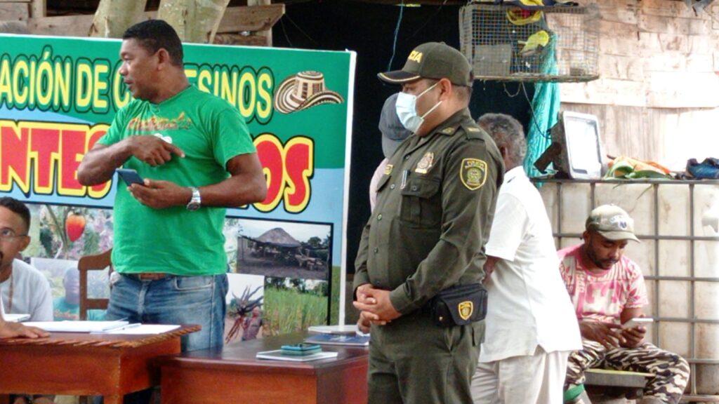 Por orden del alto mando de la Policía Metropolitana de Cartagena se adelantó una mesa de trabajo en la misma zona donde se asienta los campesinos pertenecientes a la Asociación Montes de Dios, en la finca de Cachenche, ubicada en Turbana, Bolívar.