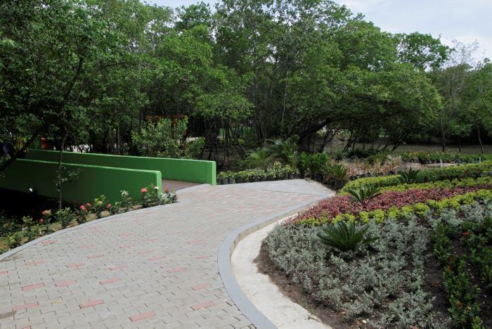 Construido a comienzos de siglo, fue finalmente dado al servicio en 2003, con dos objetivos ambientales fundamentales: servir como pulmón renovador del oxígeno para elCentro de la ciudad y usarse como zona de amortiguamiento de las escorrientías de losbarrios Nariño y Torices, para así regular las aguas del caño Juan Angola. Pretendía además valorizar la presencia del manglar como filtro biológico y servir de habitat a la gran la variedad de fauna nativa de garzas, pericos, perezosos, mapaches y culebras boas, lo que daría mayor encanto al lugar, en su utilización final como parque y sitio de esparcimiento de propios y visitantes.